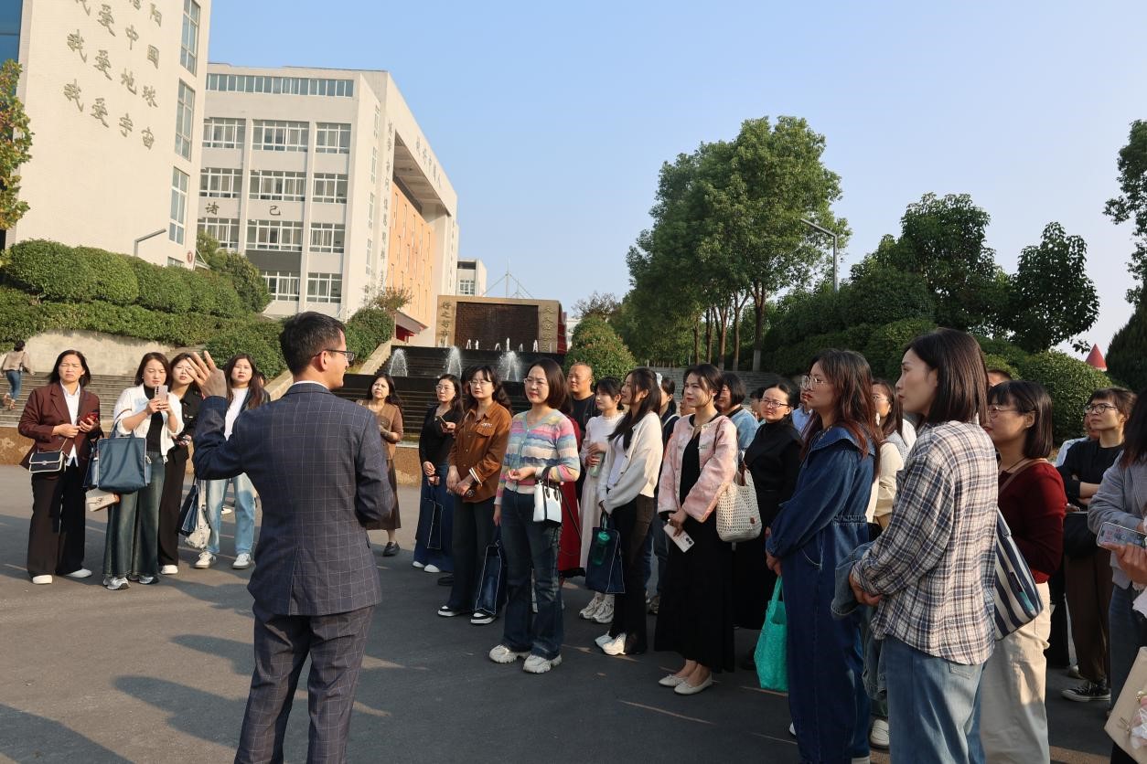 2024年10月9日上午,“国培计划”(2024)平舆初中语文县级骨干教师班的学员到达羊山中学开展观摩研学活动,受到羊山中学杨欢主任等人的热烈欢迎。首先,杨主任带领学员们逐一参观了心理室、图书馆、科技馆、体育馆、朗读亭等,了解学校的校园文化环境,深切感受到了羊山中学在校园文化建设方面的卓越成就。在大课间组织老师们参观学生们课间跑操,杨主任详细介绍了学校在促进学生综合素质发展方面的举措,特别是对学生创新能力与实践能力的重视,以及对学生心理健康和身体健康的全方位关注。这些先进的办学理念和实践经验让学员们深受启发。
