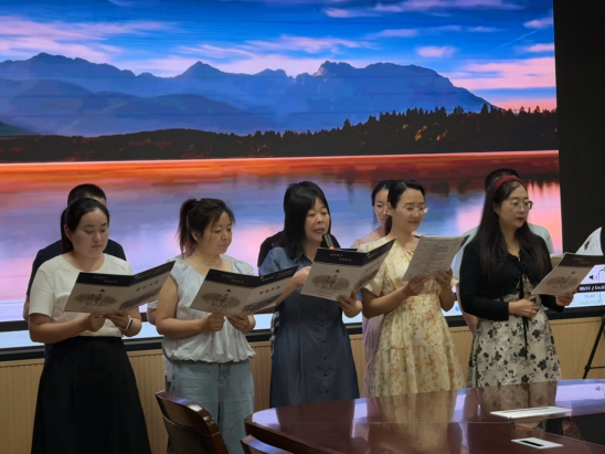表演节目同样精彩纷呈,尽显教师风采。第一组诗朗诵《一杯清茶品人生》诠释教育甘苦,第五组贾亚辉独唱《行香子》传承千年文脉;第三组《我骄傲我是中国人》抒发家国情怀,第六组《加油鸭》以童真传递快乐;第二组《我爱上班》诉说工作热忱,第七组李坤、陈阳联唱经典曲目彰显文化底蕴;第六组小合唱《相逢是首歌》珍惜同行缘分,最终全体大合唱《明天会更好》寄托对教育未来的美好期许为晚会画上圆满句号。