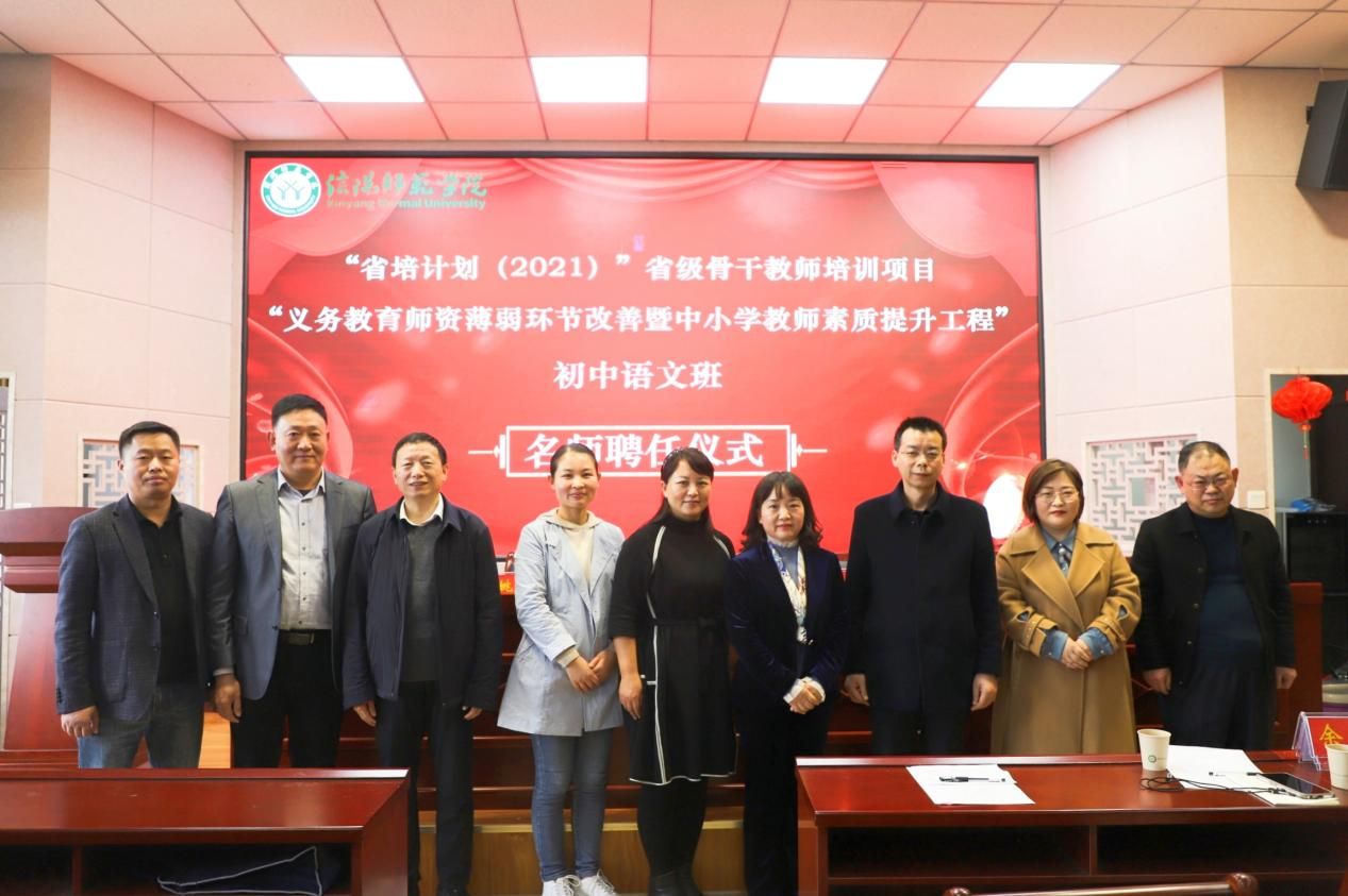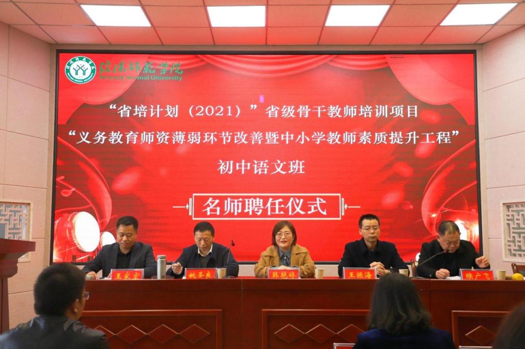 10月29日下午,成人动漫 2021“省培计划”省级骨干教师培育项目初中语文班名师网络工作室名师聘任仪式于综合楼605举行。信阳师范学院河南省中小学教师校长研修院副院长韩艳婷,*成人动漫 党委书记王振海,院长姚圣良,副书记王家宏等出席仪式,仪式由副院长缑广飞主持。
