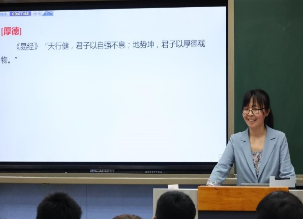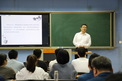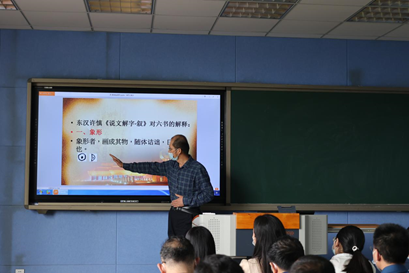 4月26日下午,进行比赛的有黄继省、柴鲜、钱道静、朱国伟四位老师。黄继省《“六书”与汉字的形体构造》,从十二生肖甲骨文字形引入课程内容,展示了河南丰富的文字资源,详细介绍了“六书”的相关知识。柴鲜《<简爱>人物形象分析》,全面的分析简爱的人物形象,将文学作品的赏析与价值观念传达相结合。钱道静的《教学模式》,将教学模式的实例与时事相结合,讲解的案例具有代表性,授课内容结构清晰。朱国伟《陆游<书愤>解读》,首先从介绍陆游生平经历切入,之后重点讲解“书愤”有关内容,主要围绕三个方面对陆游的爱国主义情怀进行深入解读。