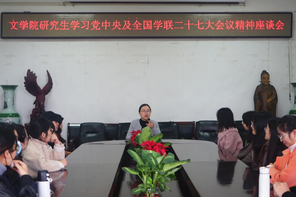为深入贯彻落实习近平总书记关于青年工作的重要思想、进一步深化高校学生会及研究生会改革、支持和引导学生会更好地服务青年学生成长成才,11月19日上午,成人动漫 研究生会工作人员在人文楼会议室召开学习习近平致全国青联十三届全委会和全国学联二十七大的贺信暨党中央致辞专题会。本次会议由研究生工作秘书刘宁老师主持,研究生团委、研究生会主席团成员及各部门工作人员参加会议。