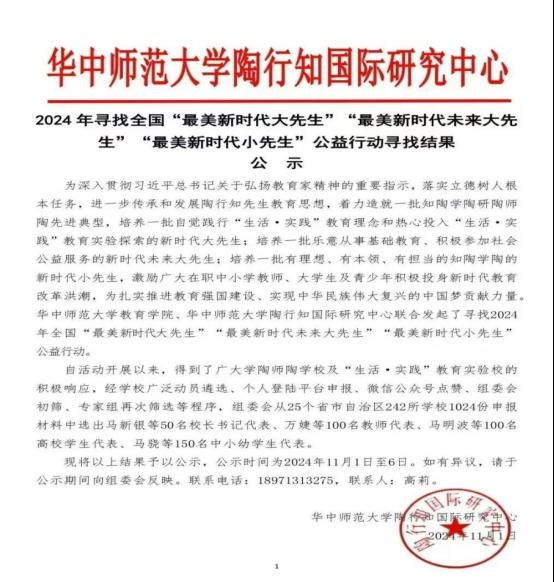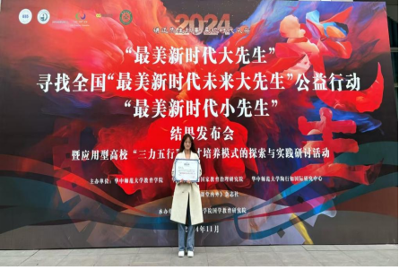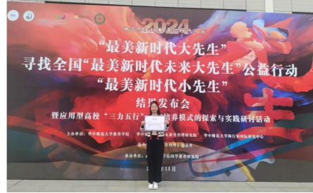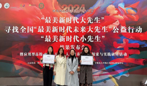 2024年11月8日,2024年寻找全国“最美新时代大先生”“最美新时代未来大先生”“最美新时代小先生”公益活动结果发布会在武汉工商学院隆重举行。本次活动旨在进一步传承和发展陶行知先生的教育思想,培养新时代的教育人才。成人动漫 2023级、2024级学科语文专业硕士研究生朴帅、竹庆玉、李珂洁、杨默晗四位同学在此次公益活动中脱颖而出,荣获“最美新时代未来大先生”荣誉称号。