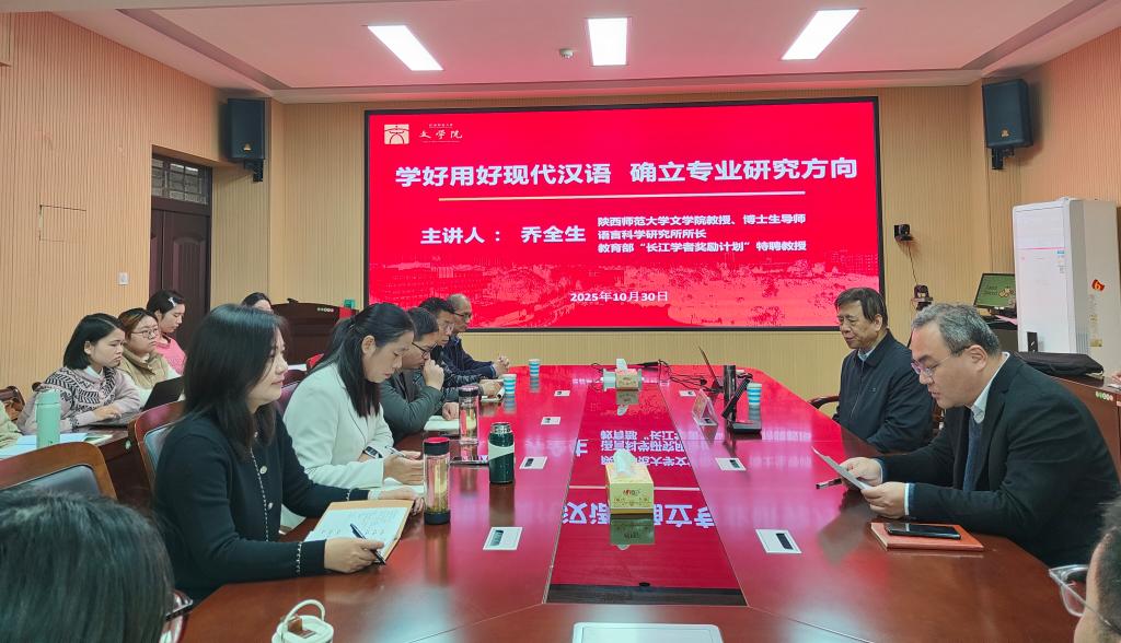 2025年10月30日上午,教育部“长江学者奖励计划”特聘教授、陕西师范大学乔全生教授莅临*成人动漫 ,以《学好用好现代汉语,确立专业研究方向》为题开展学术讲座。讲座由*成人动漫 副院长张言军主持,汉语教研室部分教师及汉语言文学专业100余名本科生共同聆听,现场氛围浓厚。