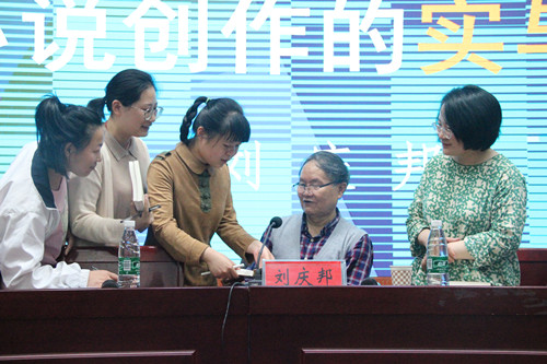 4月20日下午的文学创作座谈会由*成人动漫 党委书记吴圣刚教授主持。座谈会上,刘庆邦先生讲述了自己的成长经历和写作经验,他认为生命要有质量、力量和分量,强调指出意志力相对于体力、智力等力量而言,是一个人的软实力,最为重要,正是凭着意志力这股“心劲儿”,自己多年来坚持写作,获得了创作的成就和人生的幸福。他还就长篇小说与短篇小说的关系、小说中的女性和男性、作家和评论家的关系、中原戏曲文化与小说创作的关系等问题,与师生做了深入的互动交流。青年作家郑雄、连忠诚等作为特邀嘉宾也畅谈了对“文学与人生”的理解、对刘庆邦先生作品的审美体验。座谈会气氛温馨、交流充分、持续时间长,其间掌声不断、欢声笑语不断,现场的师生纷纷表示聆听刘庆邦先生的倾情讲述,如坐春风、受益匪浅。