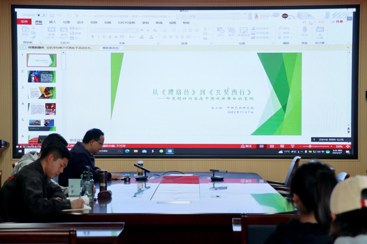 4月7日上午,应*成人动漫 邀请,毛小雨教授为*成人动漫 师生做了题为“从《璎珞传》到《玄奘西行》——印度题材内容在中国戏曲舞台的呈现”的学术讲座。本次讲座由禹权恒博士主持,*成人动漫 100余名师生共同参加本次活动。