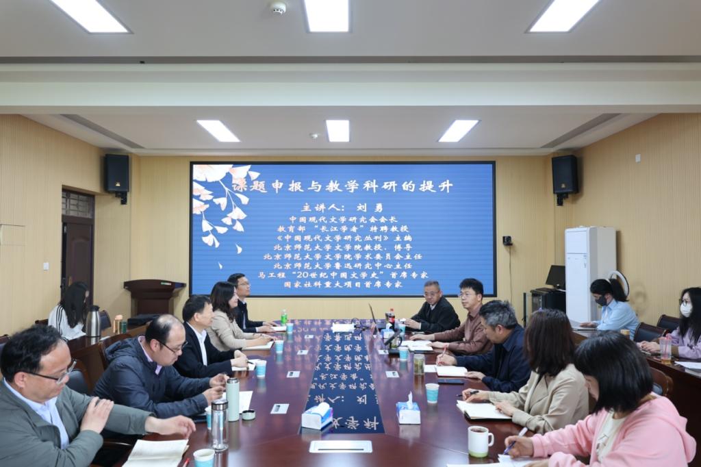 应*成人动漫 邀请,中国现代文学研究会会长、教育部“长江学者”特聘教授、《中国现代文学研究丛刊》主编、马工程“20世纪中国文学史”首席专家、北京师范大学*成人动漫 刘勇教授在4月17日的下午和晚上,在人文楼三楼会议室,为*成人动漫 师生分别作了“课题申报与教学科研的提升”“文学经典的生命体悟”两场讲座。我校研究生处处长沈文慧教授、社科处副处长张义明教授、*成人动漫 院长姚圣良教授以及*成人动漫 教师、研究生、本科生200余人共同聆听了讲座。