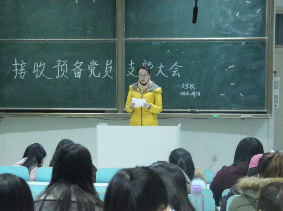 (本网讯 王征宇 魏玉沛 葛霆霆)12月5日晚,*成人动漫 学生党支部在人文楼309教室召开2016年下半年接收预备党员支部大会。*成人动漫 党委副书记杨乐、党委秘书郭西梁和全体学生党员及新一批党员发展对象共同参加此次大会。