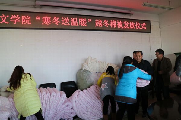 寒风虽凛冽,我心自温暖。12月18日上午,成人动漫 “寒冬送温暖”越冬棉被发放仪式在人文楼3-11举行,由成人动漫 党委书记、院长吴圣刚、党委副书记白献林为众学子发放棉被。