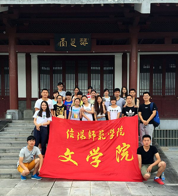 一行人怀着激动之情来到琵琶台进行参观。师生纷纷登台怀古,感悟豫风楚韵。琵琶台高耸的建筑,精致的殿堂赢得师生声声赞叹;其所蕴含信阳老八景中“长台古渡”文化遗风的文化内涵,让师生感触颇深。参观之后,师生们共同参与了“撕名牌”和“贴烧饼”游戏,场面热烈,欢声笑语不断。