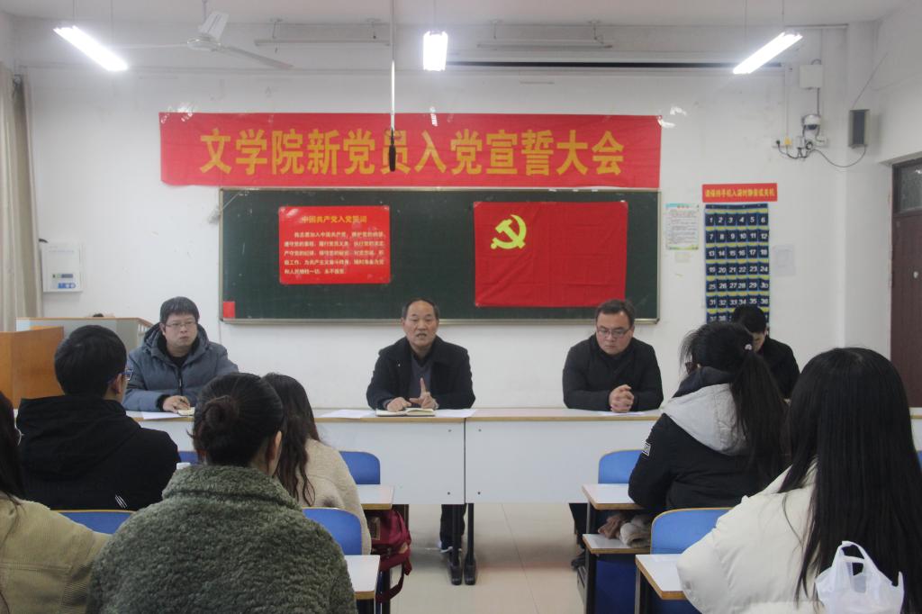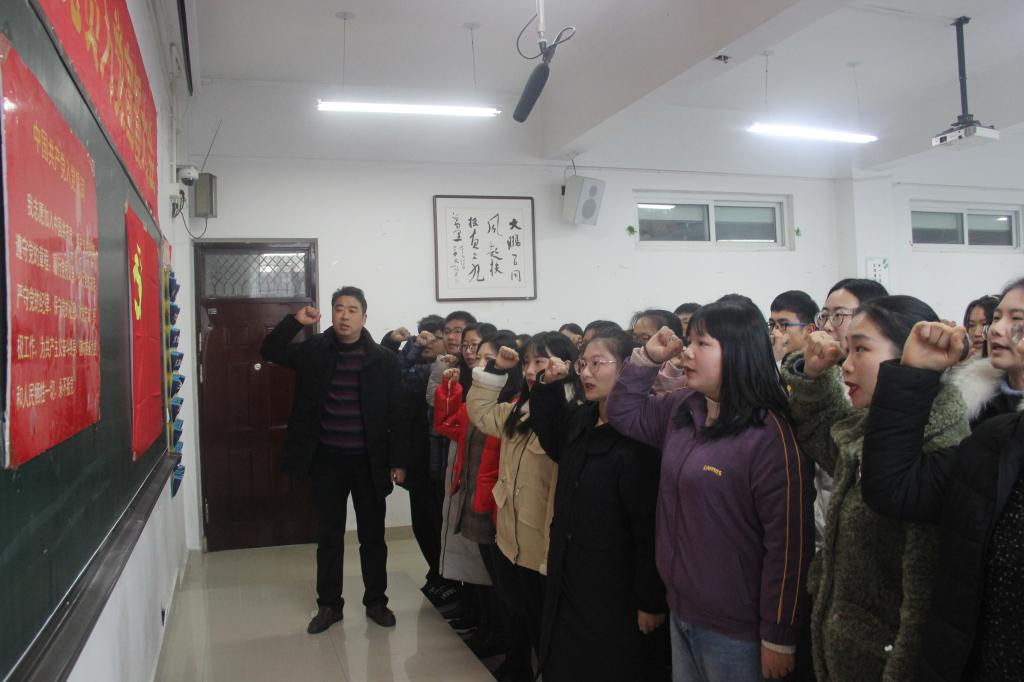 (本网讯 秦欣爽 陈倩玉)12月27日下午,*成人动漫 新党员入党宣誓大会在逸夫楼103教室召开。*成人动漫 党委书记吴圣刚、副书记杨乐、副院长张言军和全体学生党员和部分入党积极分子出席。会议由杨乐主持。