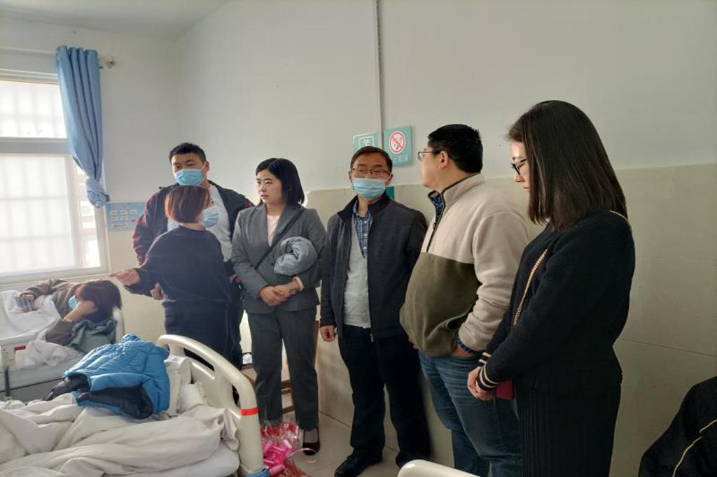 (本网讯 秦欣爽 孙晓娜 崔静雯)10月21日中午,*成人动漫 党委副书记杨乐、辅导员郭子悦老师、汉语言文学四班班主任柴鲜老师和班干部前往信阳市中心医院看望因阑尾炎住院的20级新生裴茹楠。