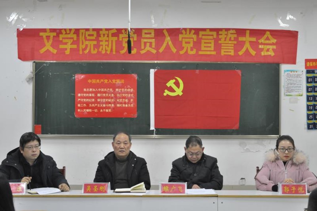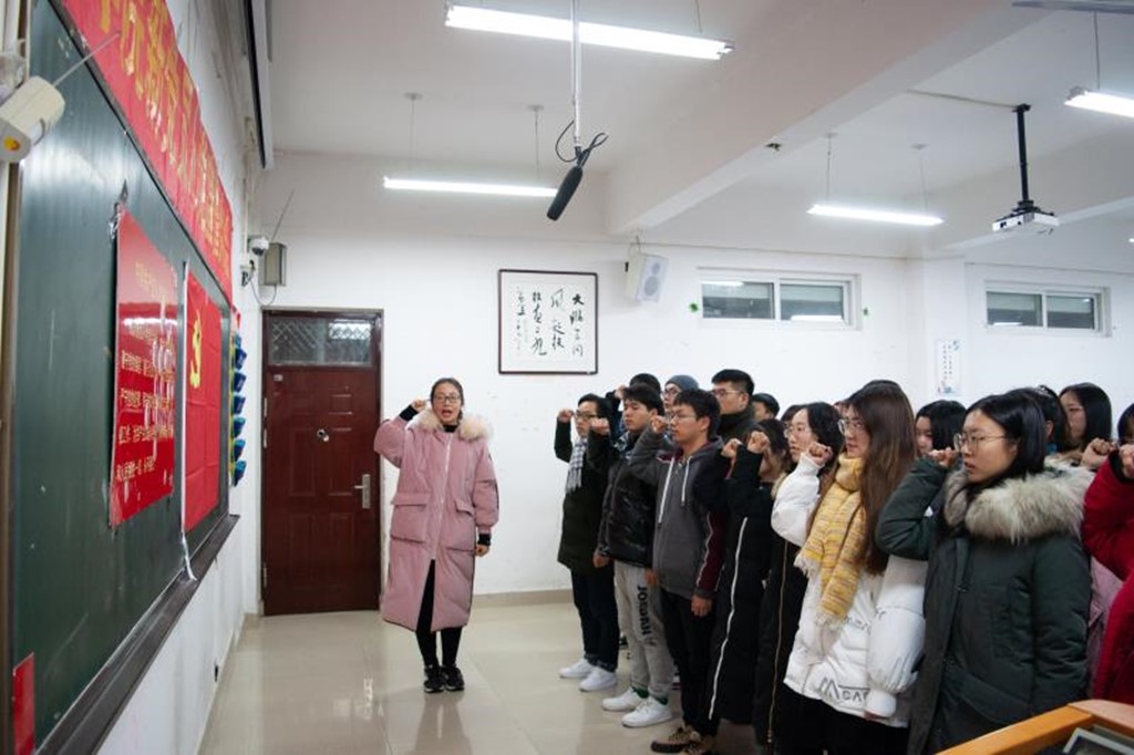 (本网讯 申嘉怡 秦欣爽 刘同卓)12月29日下午,*成人动漫 在逸夫楼103教室召开新党员入党宣誓大会。*成人动漫 党委书记吴圣刚、副院长缑广飞、党委副书记杨乐、辅导员郭子悦老师与新老党员和入党积极分子代表参加宣誓仪式。此次大会由党委副书记杨乐主持。
