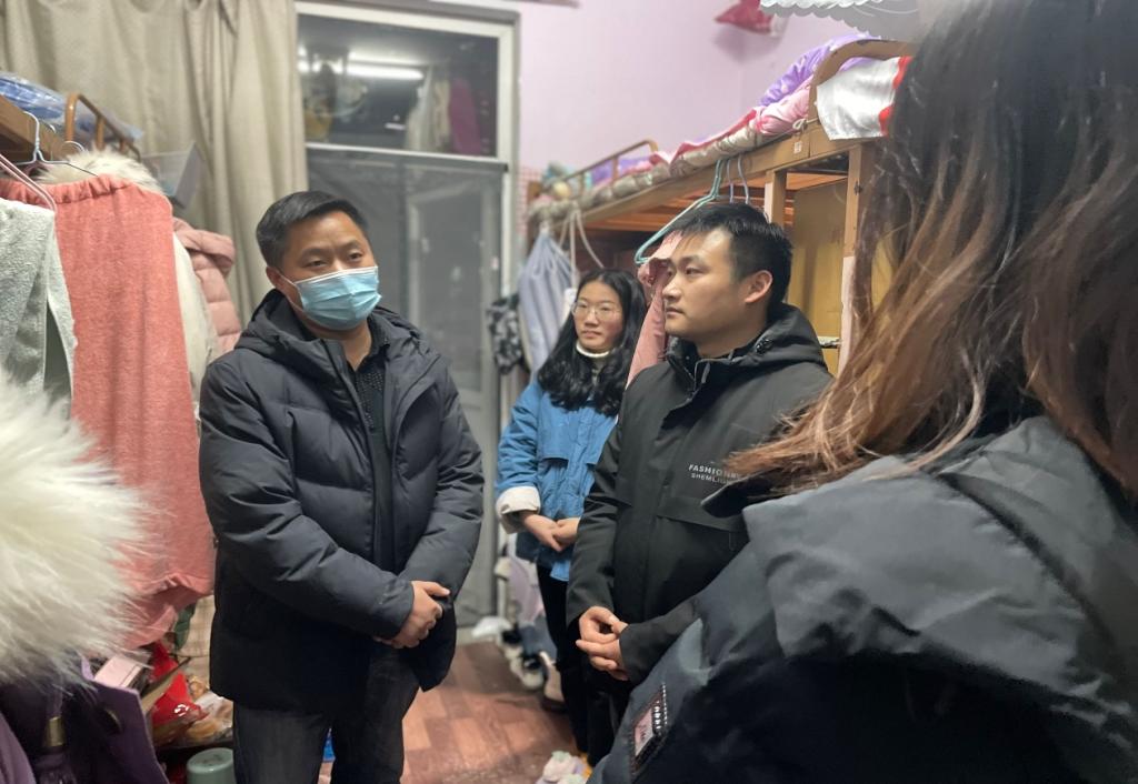 12月21日晚,*成人动漫 党委副书记王家宏、辅导员陈辉、柳家琪及学生干部前往11号宿舍楼看望慰问成人动漫 2018级考研学生。