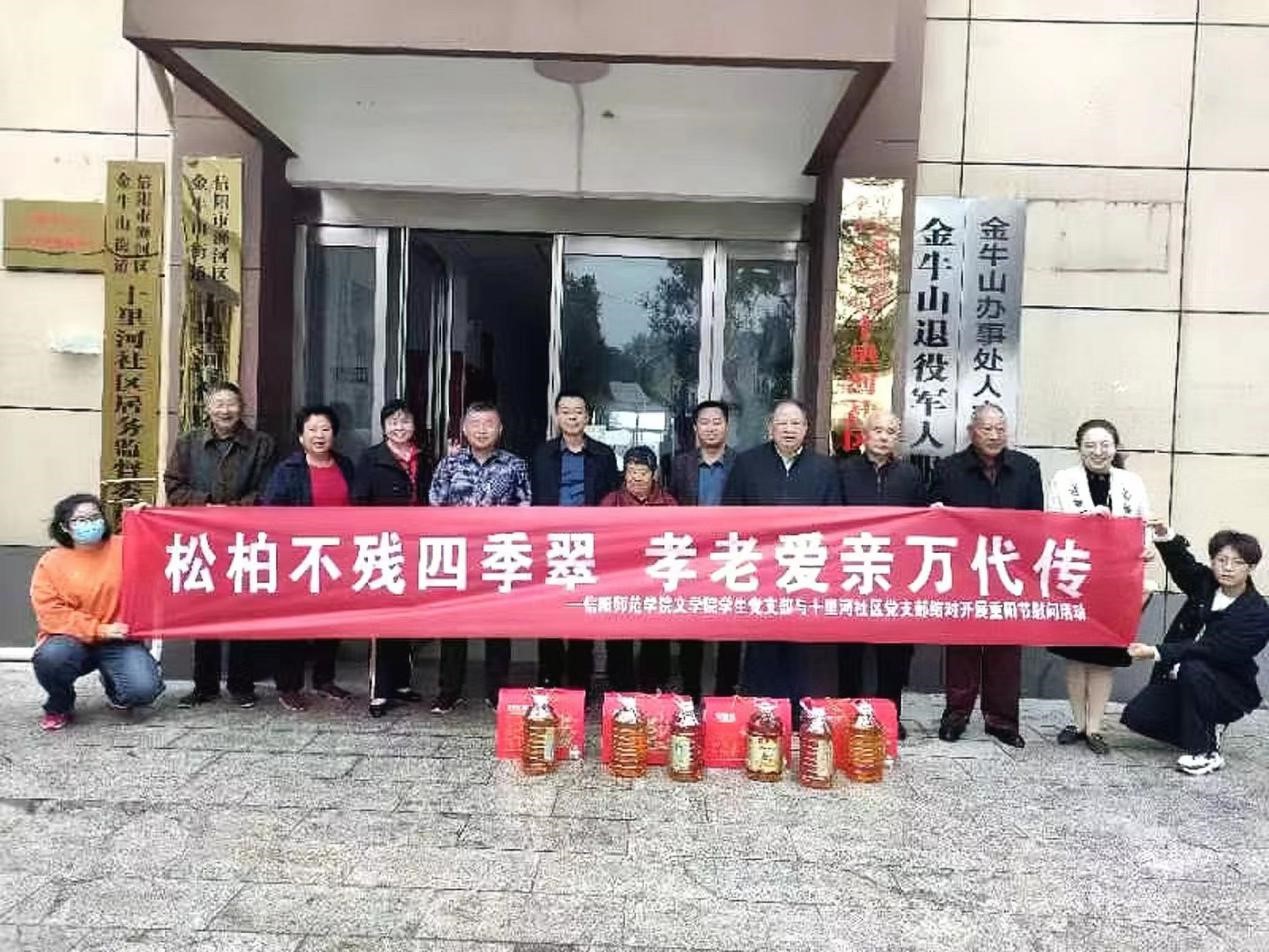 2022年10月是我国第13个“敬老月”。10月4日,*成人动漫 学生第一、二党支部与十里河社区党支部结对开展“松柏不残四季翠,孝老爱亲万代传”重阳节慰问活动。*成人动漫 党委书记王振海、党委副书记王家宏以及专职组织员郭子悦老师带领学生第一、二党支部党员代表参与此次活动。