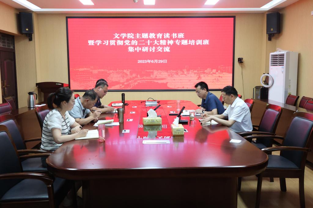 6月29日下午,*成人动漫 在人文楼三楼会议室举行学习贯彻习近平新时代中国特色社会主义思想主题教育读书班暨党的二十大精神专题培训班集中研讨交流活动。*成人动漫 领导班子成员参加学习研讨。