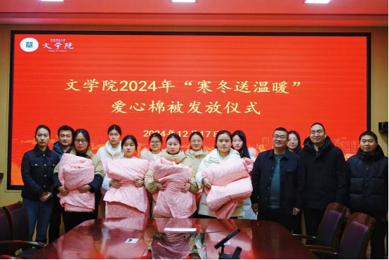 与爱相遇,暖冬之行。12月17日晚,*成人动漫 在人文楼3-7会议室举办2024年“寒冬送温暖”爱心棉被发放仪式。