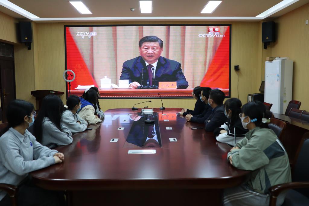 5月10日上午,中国共产主义青年团成立100周年大会在北京人民大会堂隆重举行。中共中央总书记、国家主席、中央军委主席习近平出席会议并发表重要讲话。*成人动漫 组织共青团员代表在人文楼三楼会议室观看现场直播,*成人动漫 党委书记王振海、党委副书记王家宏、全体辅导员出席活动。