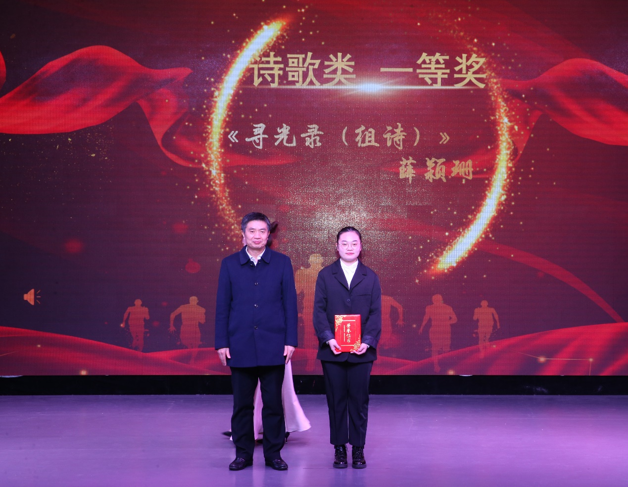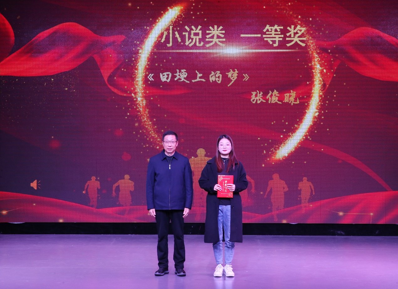 颁奖典礼上,*成人动漫 国学经典研教社、远方文学社、大学生艺术团舞蹈团、大学生艺术团合唱团表演了舞蹈《怎叹》《矜持》、笛子二重奏《我的祖国》、获奖作品《田埂上的梦》《寻光录》朗诵、红歌合唱等文艺节目,为典礼增添了喜庆热烈的气氛。