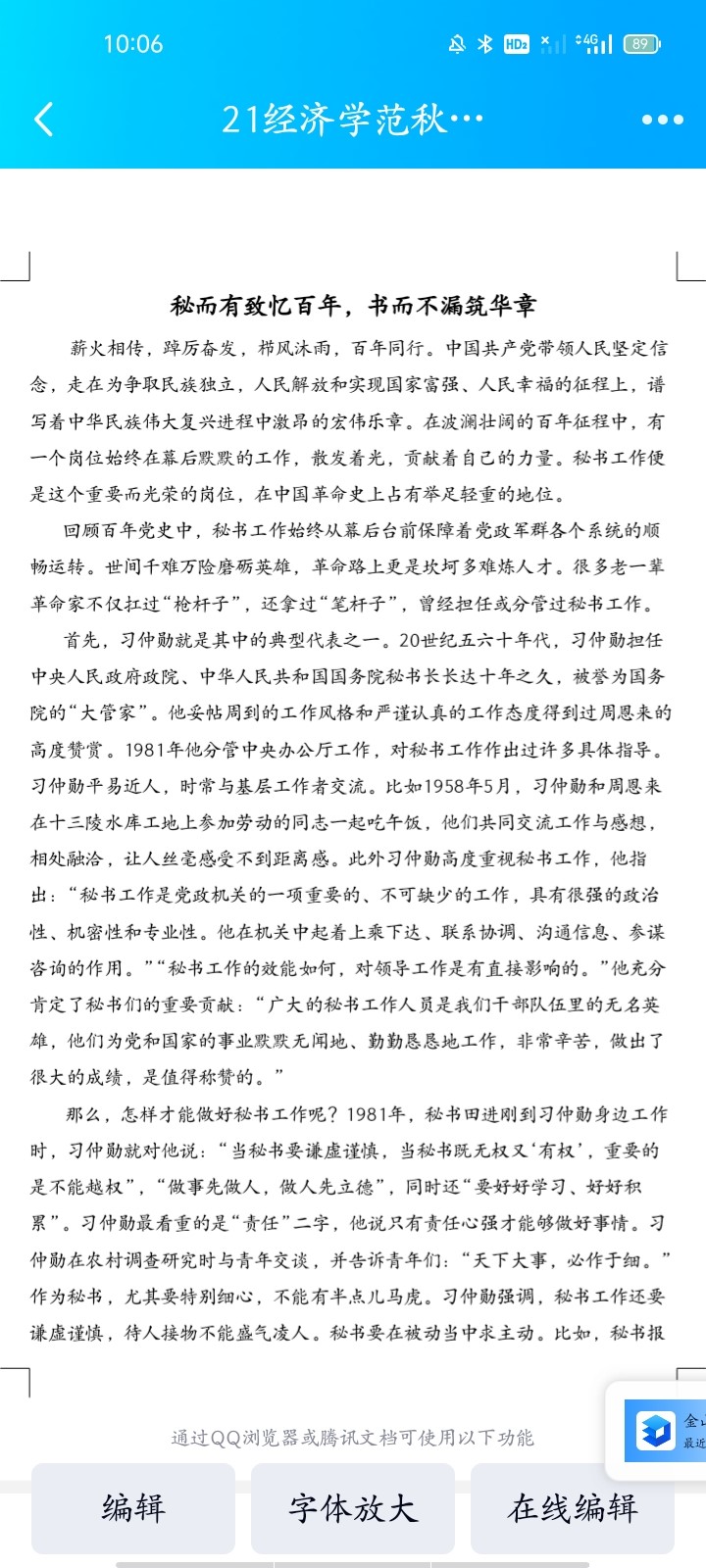 此次国际秘书节系列活动之征文大赛活动的成功举办,给秘书学子提供了一个展示自我价值的平台,锤炼和提高秘术学子的秘术写作能力。尤其是在疫情的紧张背景之下排解同学们内心的痛苦和压抑,丰富的课余生活,在探究专业知识、提升专业素养、培育精神理念等方面发挥了重要的作用。活动组织者提前对活动进行规划,工作人员建立群聊,进行宣传后组织活动有序开展。随后,参赛者在规定的时间内,根据活动要求进行作品创作,上交工作人员。在指导老师的指导下,工作人员对作品进行评比,选出优秀作品。各参赛者积极认真准备,满怀热情对待活动,上交的作品不仅内容丰富、形式多样、数量众多、并且质量上乘,培养了当代大学生的勇挑重担、艰苦奋斗、战胜一切困难的精神和齐心协力、团结合作的精神,丰富了大学生的精神文化生活。最后工作人员在活动中公布获奖名单并且给予奖励。