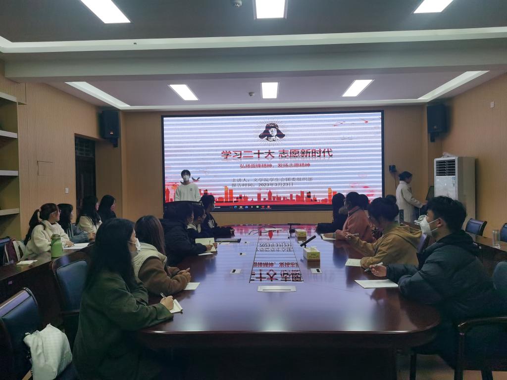 为了深入贯彻落实党的二十大精神,更好把握雷锋精神的时代内涵,3月23日,*成人动漫 团委组织部于人文楼3-7会议室举办“学习二十大,志愿新时代”主题团日活动,*成人动漫 团委组织部成员以及2022级学生参与了本次活动。