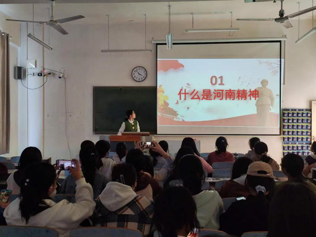 本次团课活动围绕着讲述新时代河南精神展开。首先,各班团支书为大家讲解了河南精神的内涵,阐明了践行新时代河南精神的必要性。紧接着各班通过讲述一个个优秀河南人物的事迹,使同学们更充分地感受到了河南精神的力量。最后,各班团支书进行总结,指出我们作为新时代青年要积极弘扬和实践新时代河南精神,在河南现代化建设的过程中奋勇争先。在活动进行过程中,各班级同学积极发表感悟,通过视频观影、提问讨论等形式推动本次主题团课活动的开展。