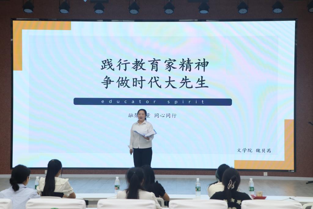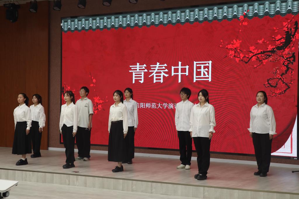 活动开始,张佳淇带来的歌曲《永不失联的爱》拉开了活动序幕。接着,魏贝茜同学以自己的初中老师为演讲主人公,讲述了《践行教育家精神,争做时代的大先生》的故事,深情地感激并赞扬了这样一位鞠躬尽瘁的人民教师。随后,罗晴晴同学带来的《跨越山海奔赴远方,只为心中的爱与传承》,讲述了国际教育学院学院白先勇和朴信爱两位韩语老师的人生经历,优美的演讲词和生动的插图与视频吸引了在场同学的目光。活动中场,演讲朗诵协会的九位同学共同朗诵了《青春中国》,铿锵有力的声音和默契的配合,为现场观众呈现了一场朗诵盛宴。接着,姜潇晴的《世间没有超级英雄,但有他们》为我们讲述了一位消防员的故事,一双铁拳,破碎火海狂飙,一身戎装,奔向火场救援。随后,由王恒带来的《你若盛开,蝴蝶自来》,讲述了自己成为一位“斜杠青年”的学习历程,激励同学们在课余时间,要继续培养自己的爱好,不断充实自我。活动最后,曹旭宏和连佳欣带来的歌曲《月牙湾》为本次大赛拉下帷幕。