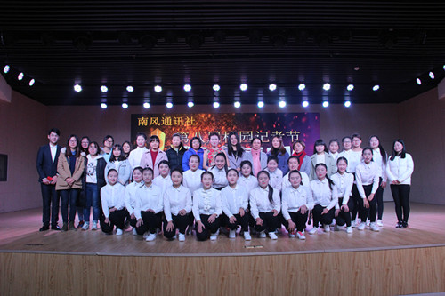 (本网讯 王俊琪 王征宇)12月2日晚,理科楼报告厅流光溢彩,热闹非凡,南风通讯社第八届校园记者节颁奖盛典成功举办。*成人动漫 院长、社团指导老师沈文慧,团委老师许霏等应邀出席,与现场三百余名的同学共同观看了此次晚会。