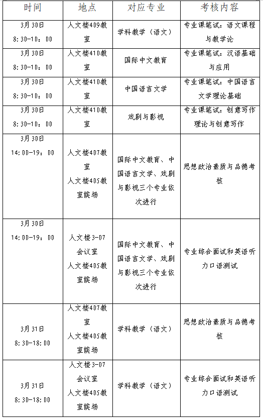 学科教学(语文)、国际中文教育、中国语言文学、戏剧与影视,以上各专业均采用现场复试。