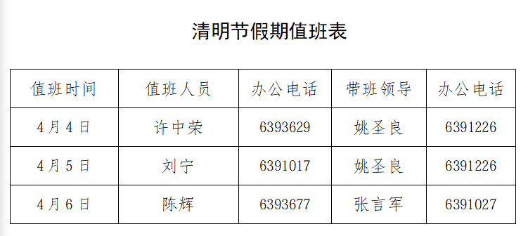 *成人动漫 清明节假期值班表