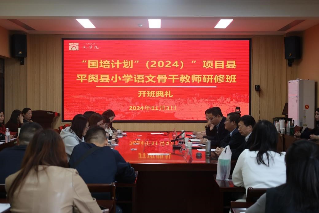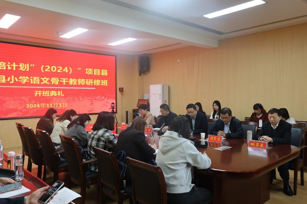11月3日下午,“国培计划(2024)”项目县(平舆县)小学语文班开班典礼于成人动漫 人文楼三楼会议室成功举行。出席此次典礼的有平舆县教育局副局长王辉、平舆县教师教育股股长房长芳、成人动漫 教务处副处长周学勇、*成人动漫 党委书记周贤亮、*成人动漫 院长姚圣良以及来自平舆县的50名小学语文骨干教师。典礼由*成人动漫 党委书记周贤亮主持。