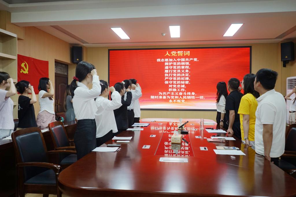 大会在激昂的《国际歌》中拉开了序幕。20名新党员在专职组织员郭子悦的带领下,面向党旗、庄严宣誓:“我志愿加入中国共产党,拥护党的纲领,遵守党的章程,履行党员义务……。”铮铮誓言、铿锵有力,表达了对党的忠诚以及为共产主义事业奋斗终身的坚定决心。