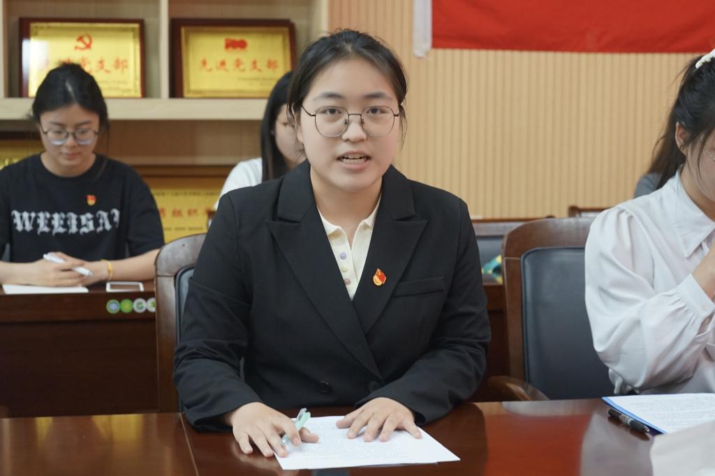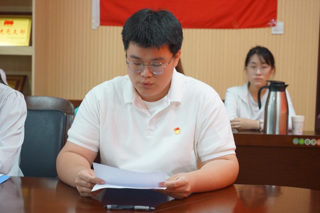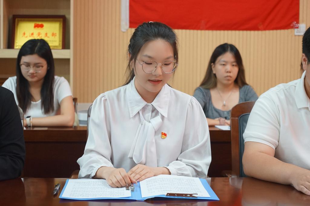 22级朱婧同学作为老党员代表作了发言,她回顾了自己入党以来的成长经历与深刻感悟,对党组织的悉心培养和教育表达了衷心的感激之情,并坚定表示今后将更加全心全意地为师生服务,积极履行党员义务。23级常文龙同学作为新党员代表,表达了自己在党旗下宣誓时的激动与自豪,回顾了在党建部工作的两年间所付出的每一分努力和心路历程。他承诺将以誓为纲、以行践诺,努力做一名合格的共产党员。23级邓岚戈同学作为入党积极分子,表达了对党的深厚向往。她表示在今后的工作和学习中,将以身边的党员为榜样,主动接受党组织的考验和培养,积极践行知行合一的成长理念,确保“积极分子”这一政治身份不仅是一个称谓,更是其先进行为的有力证明。