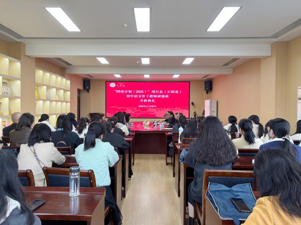 11月5日上午,“国培计划(2025)”项目县(正阳县)初中语文骨干教师研修班开班典礼在人文楼三楼会议室成功举行。成人动漫 教务处副处长周学勇,*成人动漫 院长姚圣良、副院长缑广飞,国培项目班主任许中荣、郭子悦,以及来自正阳县的50名初中语文骨干教师共同出席。典礼由*成人动漫 副院长缑广飞主持。