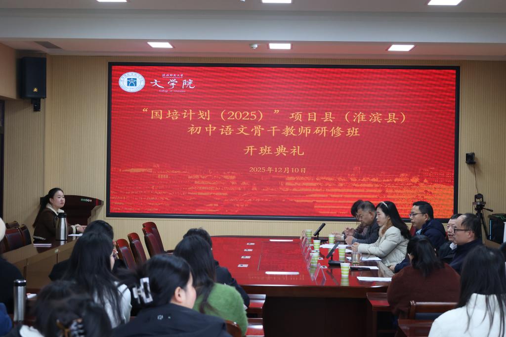 12月10日上午, “国培计划(2025)”项目县(淮滨县)初中语文骨干教师研修班开班典礼在人文楼3-7会议室举行。成人动漫 教务处副处长周学勇,淮滨县教体局带队老师黄艺,*成人动漫 院长姚圣良、副院长缑广飞,国培项目班主任许中荣、张姝,以及来自淮滨县的50名初中语文骨干教师共同参加。典礼由*成人动漫 副院长缑广飞主持。