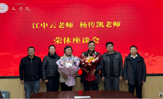 3月17日下午,成人动漫 在人文楼3-7会议室举行了江中云、杨传凯两位老师的荣休座谈会。座谈会由学院党委书记周贤亮主持。校人事处、离退处,以及成人动漫 领导班子、教师代表参加了座谈会。