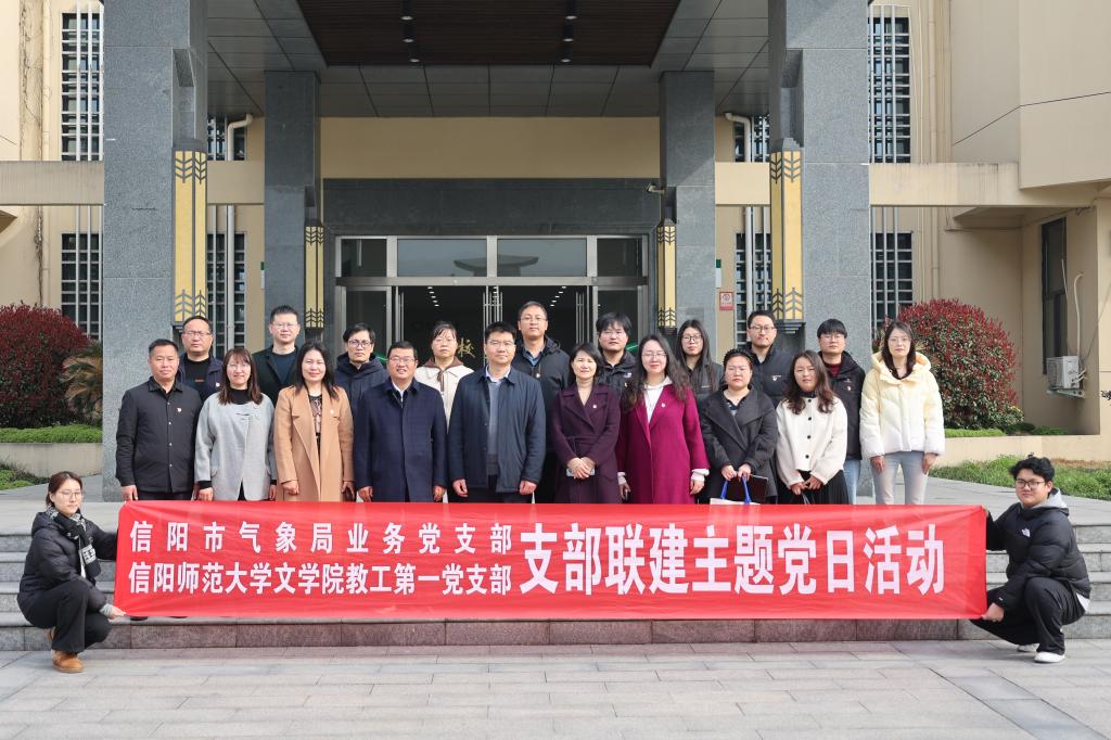 3月20日,*成人动漫 教工第一党支部与信阳市气象局业务党支部联合开展“守牢安全底线践初心 深耕淮域文脉担使命”主题党日活动。信阳市气象局党组书记、局长于庆学,党组成员、副局长胡玉梅,*成人动漫 党委书记周贤亮等参加活动。