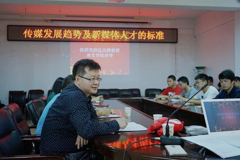 5月18日下午,汪先腾应邀在人文楼3-11会议室做《传媒发展趋势及新媒体人才的标准》主题讲座。*成人动漫 党委副书记白献林主持,*成人动漫 党委秘书郭西梁,团总支老师曹宇、李晓云、许霏等部分师生参加。
