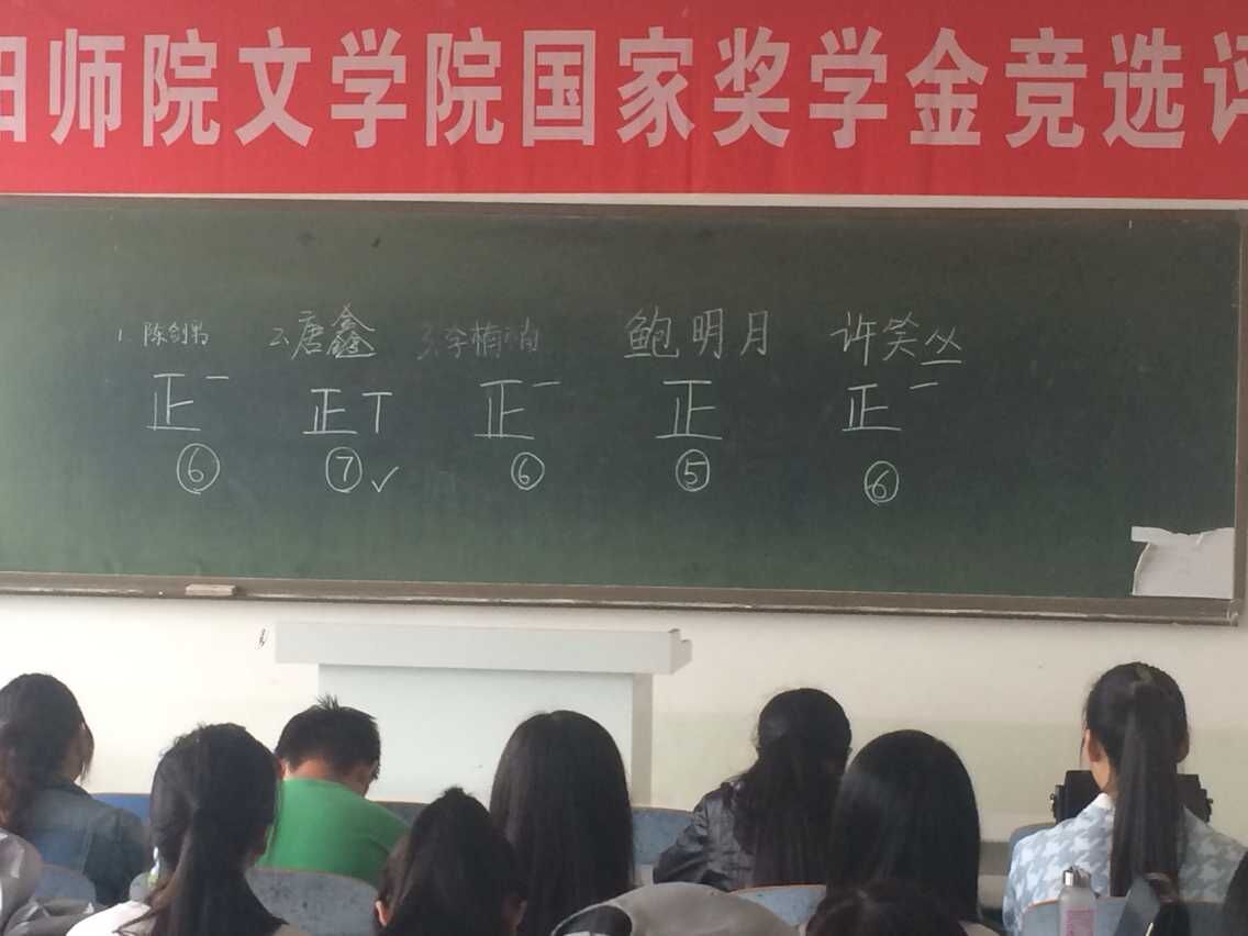 历年来,*成人动漫 国家奖学金评定一直坚持公开、公正、公平原则,严格按照有关规定进行奖学金的评定,努力确保入选学生为成绩优异、表现突出者,激励*成人动漫 学子努力学习、刻苦钻研,力争上游,积极展示自身风采,利于在成人动漫 形成浓郁的积极向上学习氛围。(图为 2013级经三轮投票评定2名国家奖学金获奖者候选人的情形)