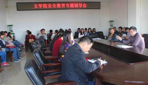 在人文楼会议室3-11召开校园安全教育会议,党总支副书记白献林,各年级辅导员和班主任、学生会全体成员及各班班长、团支书一同参加此次会议。