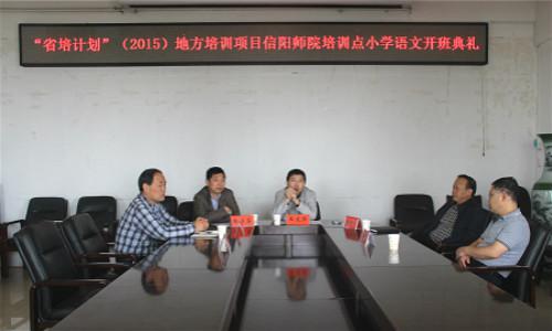 (本网讯郎淑洁)10月19日上午,“省培计划(2015)”地方培训项目漯河市小学语文培训班开班仪式在成人动漫 会议室举行。副校长王文臣、成人动漫 院长吴圣刚、副院长缑光飞、漯河市教育局科长朱连昌与50余名漯河市小学语文骨干教师共同参与了此次开班典礼。典礼由我校教务处副处长祁传达主持。