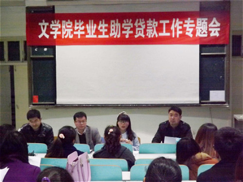 (本网讯刘新宇罗艳芳侯凤宇)4月8日晚,*成人动漫 在人文楼409教室召开2015级毕业生助学贷款工作专题会。成人动漫 党总支副书记白献林,团总支老师郭西梁、曹宇出席。