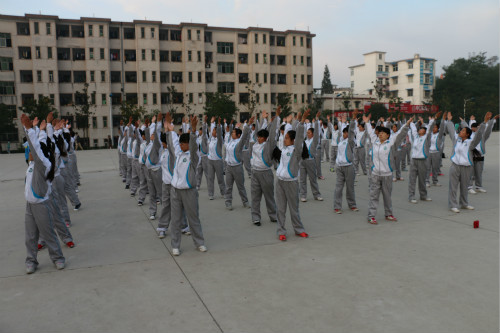 6点20分,李晓云一行已到东操场。随后,各班级迅速集合,伴随着明快的节奏、轻松的旋律,同学们做起第九套广播体操。场面宏大的队伍、整齐划一的动作不失为清晨中一道的靓丽的风景线。伸展、扩胸、跳跃一系列动作标准娴熟,队形变换新颖别致,集散聚合整齐有序,充分展现了学子朝气蓬勃的精神面貌。