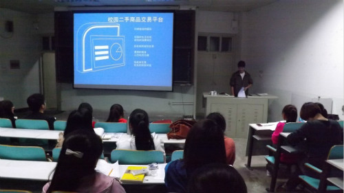 (本网讯侯凤宇裴荆巧)创新造就辉煌,创业实现梦想。4月14日晚,由*成人动漫 主办的“创青春”创新创业大赛评选活动在人文楼409教室成功举办。*成人动漫 2012级辅导员郭西梁、2013年省级创新创业大赛获奖选手任欣欣及部分学生干部担任比赛评委并与现场50余名同学一起观看了此次评选活动。