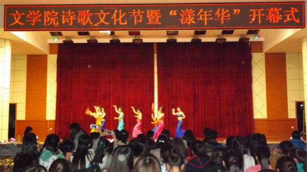 (本网讯 裴荆巧 李宝丽 王从慧)春暖花开抒发诗意情怀,载歌载舞共谱青春乐章。3月17日晚,信阳师院逸夫楼报告厅灯光璀璨,掌声雷动。由*成人动漫 主办的“漾年华”诗歌文化节开幕式在此隆重举行。*成人动漫 团总支书记冯正强、辅导员郭西梁老师与*成人动漫 全体学子共同观看了此次演出。