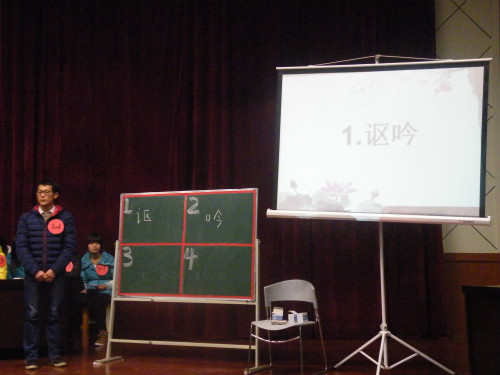 经过初赛、决赛的层层选拔,“一战到底”、 “无懈可击”、“dream team" 等5支代表队脱颖而出,走上决赛现场。此次比赛采用淘汰制,5组共计40名选手轮流上前,根据主考官读出的字词的的标准读音及解释意义写出答案。比赛中,选手们展现出了高水平汉字书写能力和深厚的语言文字素养,引得台下观众掌声不断。经过2个多小时的激烈比拼,根据最终场上各队剩余人数,主考官评定“无懈可击”、“dream team”代表队获得三等奖、“一战到底”、“逐梦队”代表队获得二等奖、“文海笔畅”代表队获得一等奖。