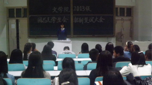 (本网讯 高笑蕊 宋艳茹)为选拔优秀学生进入团总支学生会组织,9月27日晚,*成人动漫 团总支学生会2013年招新复试在人文楼409、410教室如期开展。经过初试的选拔,共有120余名考生进入复试环节。复试的评委由*成人动漫 学生会主席团及各部主要负责人共同担任。