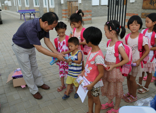 郝堂宏伟小学校长杨文平和小学生们对*成人动漫 领导和志愿者的到来表示热烈的欢迎。杨校长详细地向大家介绍了学校的招生现状、教学模式和教育理念,自然,环保,可持续的办学主旨得到了大家的一致好评。随后,吴院长和白书记等领导现场为二十余名小学生分发礼物,在杨校长的带领下,学生们与领导老师进行了亲密的互动。志愿者带领小朋友们在校园里唱歌、做游戏,孩子们热情高涨,积极参与,现场欢声笑语不断。