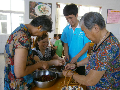 实践志愿人员一大早便来到了敬老院,在工作人员安排下与老人在餐厅进行聊天互动。志愿者与老人进行了面对面的交流,他们亲切地和老人“唠家常”,详细了解了老人们的身体情况、家庭状况并以“养老院里的乡愁”、“儿女不在身边的孤独”等问题为切入点,深入了解其精神需求。随后,为了放松心情,志愿者为老人带去了才艺表演。汤莎莎演唱《学习雷锋好榜样》、《家乡》等歌曲,老人们乐得合不拢嘴,给予热烈掌声。八十多岁老奶奶高歌“世界是你们的,也是我们的……”将现场气氛引向高潮,在轻松愉快的氛围中,志愿者和老人们成了真正意义上的忘年交。一旁,后厨人员和阿姨在为中午的红枣银耳汤做准备,志愿者耐心帮阿姨拨出红枣核并详细了解了老人们的餐谱和饮食情况。