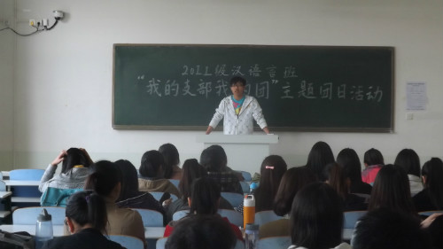 (本网讯 钱露露)为响应校团委的号召,引导广大青年学生牢固树立共产主义信仰,4月11日下午,*成人动漫 2011级汉语言班在人文楼306教室举办“我的支部我的团”主题活动。该班60余名同学积极参与,一起分享了对大学校园生活的感受。