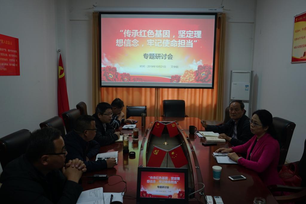 召开“传承红色基因,坚定理想信念,牢记使命担当”专题研讨会,分党委书记吴圣刚、院长沈文慧及全体党政领导班子成员参加,研讨会由吴圣刚主持。